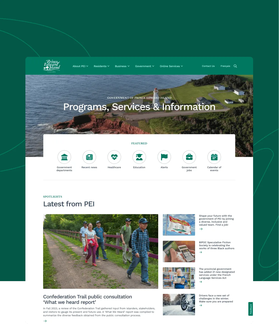 - Aligning the new website with the Government of Prince Edward Island’s brand guidelines with striking landscape visuals to reflect the natural beauty of the coast