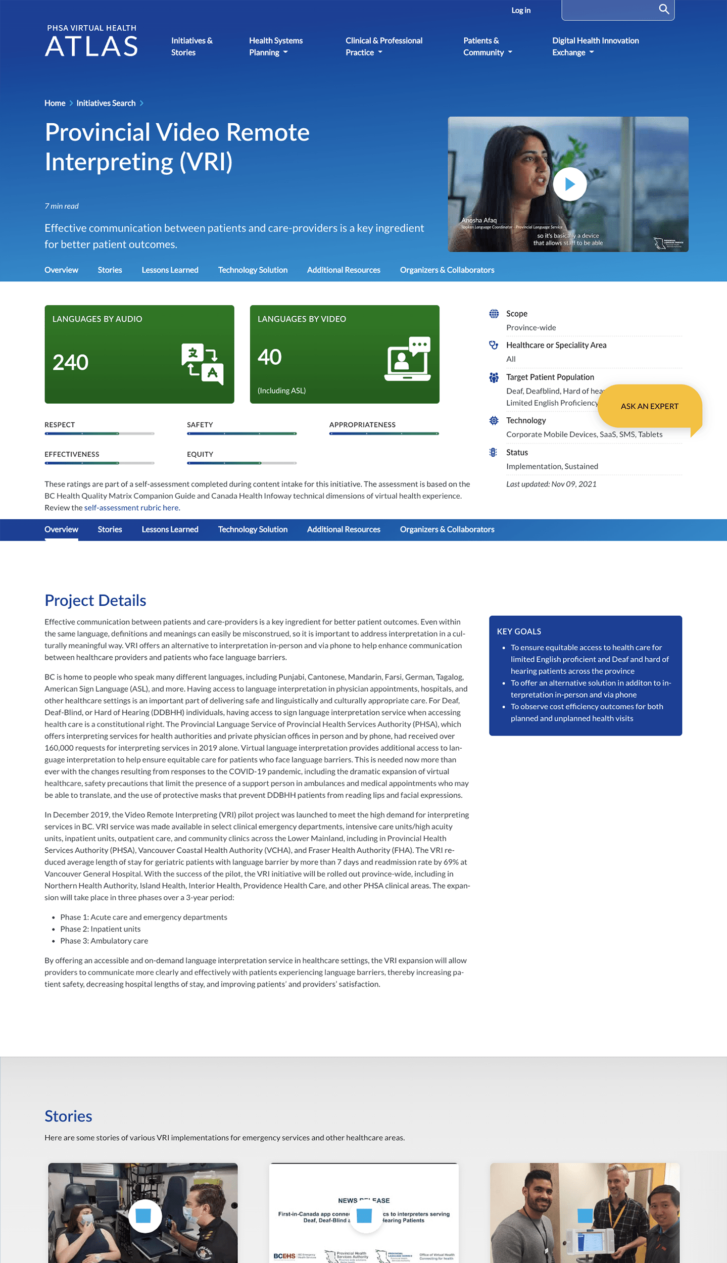 - The Atlas: An online compendium of virtual care initiatives in British Columbia that required a new resources section, an improved map display, and a faceted search function.