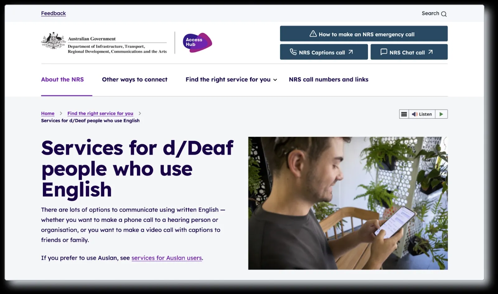 CivicTheme was chosen as a Drupal theme that would help Access Hub launch faster and with a reduced cost. Given Access Hub provides information to people who are d/Deaf, hard of hearing or who have a speech communication difficulty, accessibility was the top concern / goal of the project.