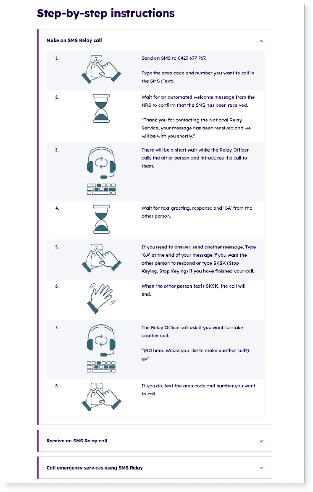 Access Hub subject matter experts provided initial copy for the new website. With the new information architecture and user journeys set up by Today, our Salsa Digital content strategist needed to write new content pages and re-write others to fit with the new structure. All content pages were also edited to ensure they followed web writing best practice, including meeting content accessibility standards. While the original brief was for 20 pages of content, the final content was nearly double the size, and many of the pages needed to be long, with detailed instructions for users.