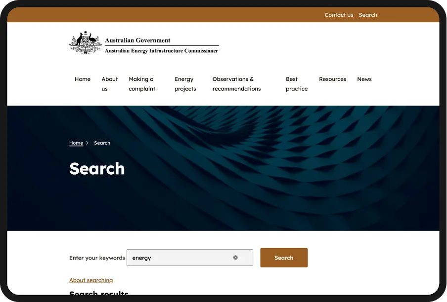 The Australian Energy Infrastructure Commissioner (AEIC) Drupal 7 website was coming to End-of-Life. Salsa worked with the AEIC to build its new GovCMS Drupal 9/CivicTheme website. Salsa created a visually appealing website, delivered on time and well under budget (overall spend was just over $25K).