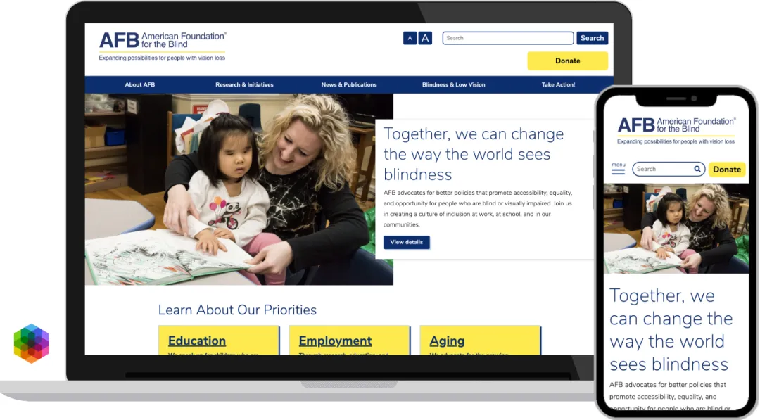 After nearly 100 years of helping people with vision loss within the system, AFB broadened their mandate to change the system itself. They needed a partner to redesign their web presence to both launch a revolution and continue serving their established audience. Of course, accessibility was essential, both in delivering a usable design for all vision levels and that developers with vision loss could build.