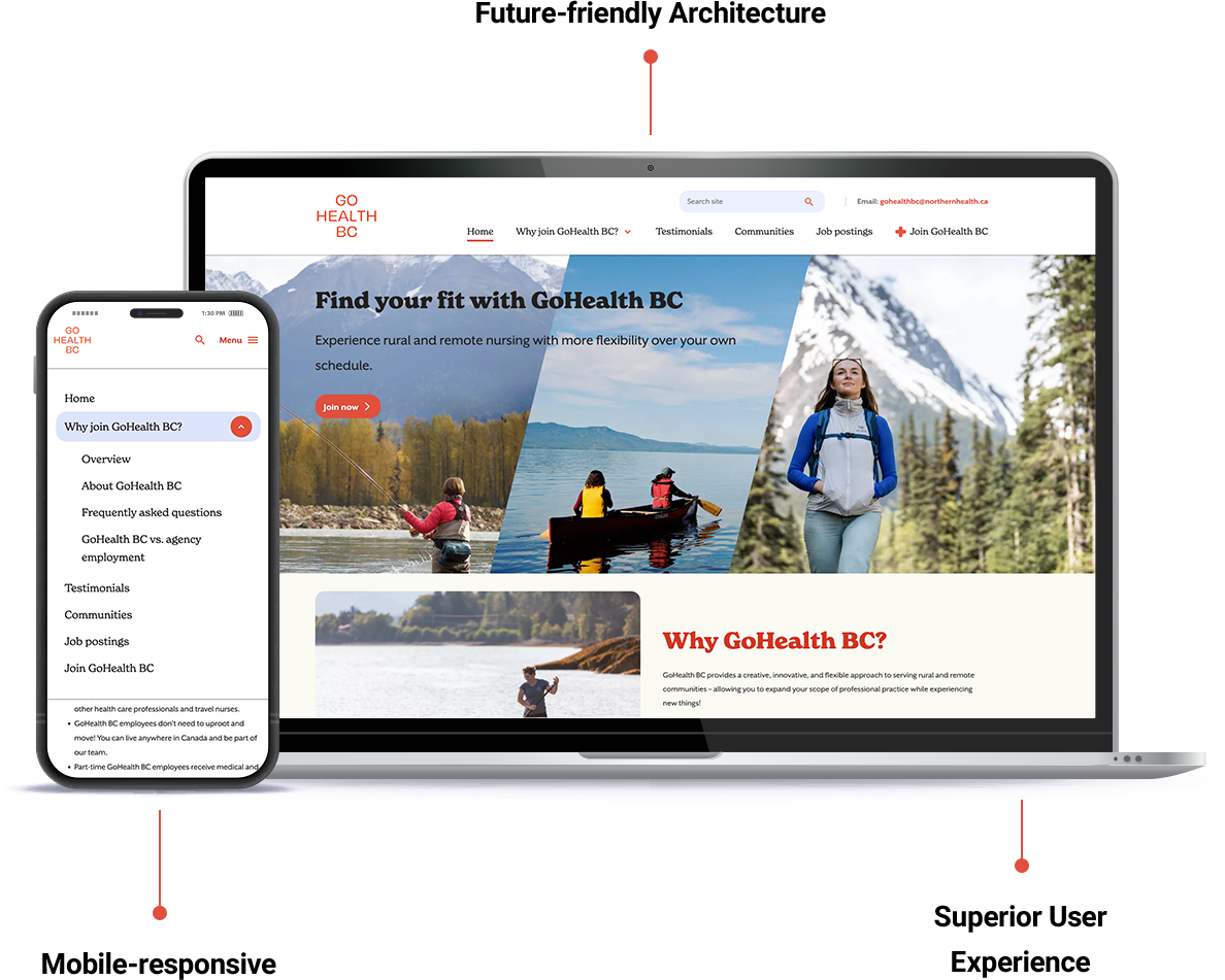 The project's goal was to address critical staffing shortages in rural areas of northern British Columbia by attracting qualified healthcare candidates. The website was developed by Acro Commerce using Drupal, a flexible and secure open-source platform favoured by government and healthcare organizations.