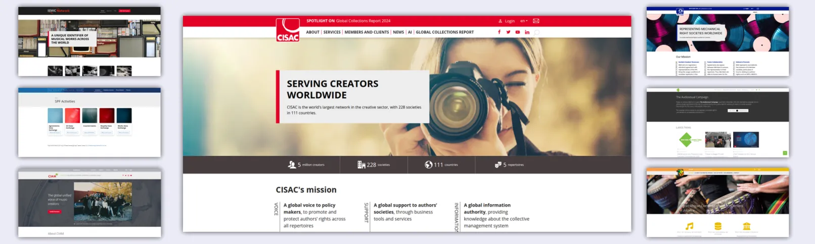 - Enhanced UX and communication: the previous site suffered from an outdated design and a cumbersome structure, hindering effective communication and navigation for users trying to access CISAC's key information and messages.