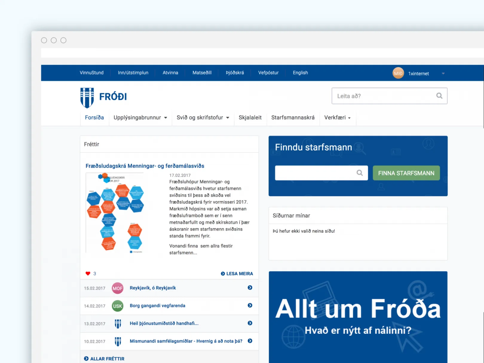 The City of Reykjavík has over 9000 employees in different public sectors like schools, kindergartens and public government institutions. The old intranet was hardly used by employees as it didn't have many of the functionalities the users expected from such a platform. Also the design and the user experience felt dated and uncomfortable.