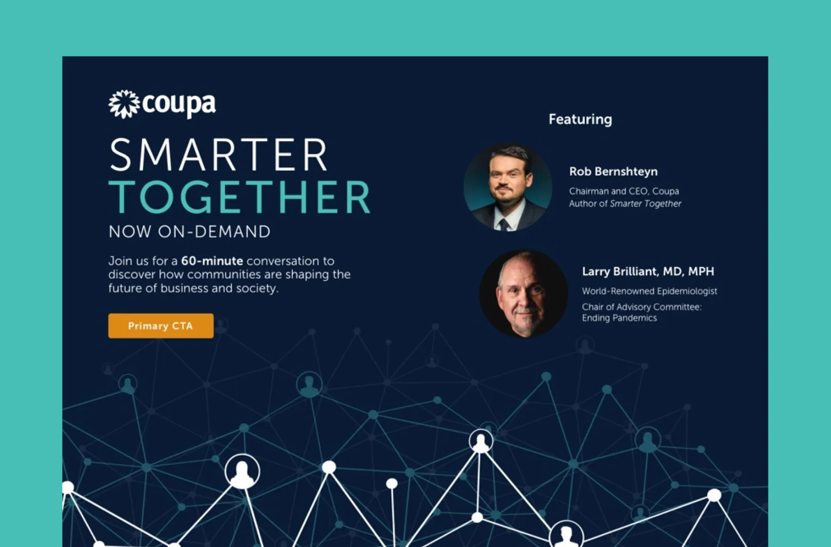 In a four-week time frame, we implemented core capabilities of Drupal that allowed Coupa to quickly meet their conference objectives of lead generation and a more intimate connection with prospects through their digital conference. Going forward, Coupa has a site that allows for ease of use with the flexibility to manage it on their own.
