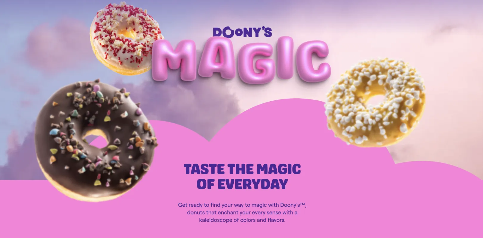 We received a challenging assignment from Vandemoortele within their Branded Multisite platform. This time we were asked to create a unique website for their brand Doony's, known for their delicious donut assortment. The goal was to create a creative and imaginative design that completely immerses visitors in the fantasy world of Doony's