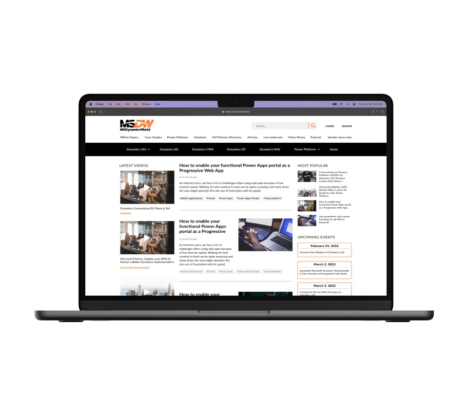 MSDynamicsWorld (MSDW) is a digital platform delivering technology-related content for Microsoft Dynamics professionals. It offers registered users access to the latest news, expert insights, best practices, case studies, white papers, and more, with a focus on Dynamics 365, Power Platform, and the Microsoft Cloud ecosystem.