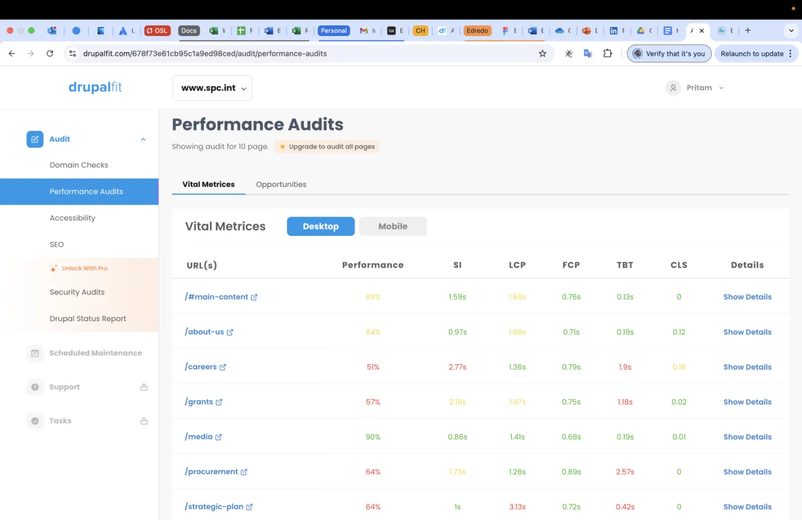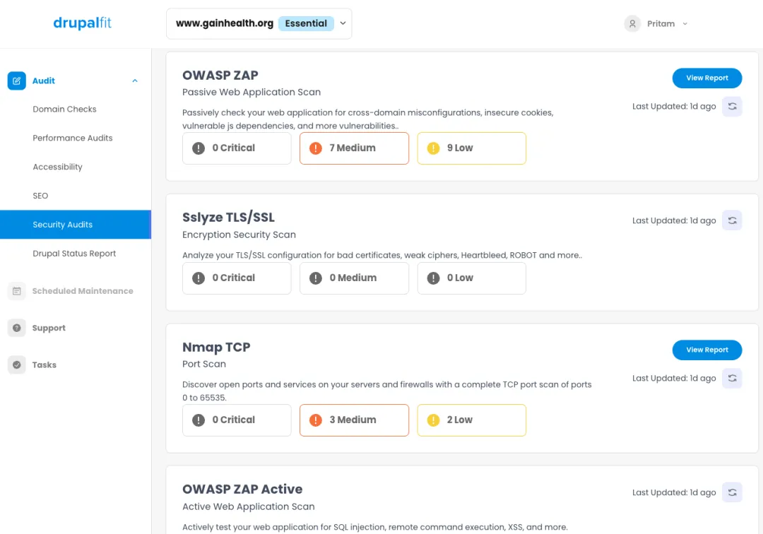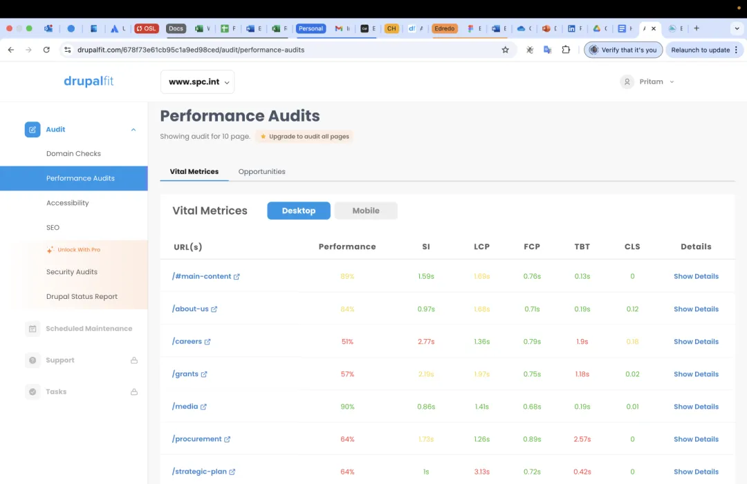 For example, audit services, which involve resource-intensive processes like SEO and accessibility checks were not suited to run within Drupal. Instead, they were decoupled into separate microservices using Node.js and AWS Lambda. However, Drupal’s built-in strengths in membership management, content management (blogs), workspace management, and pricing models made it the perfect backbone for structuring DrupalFit as a SaaS product.