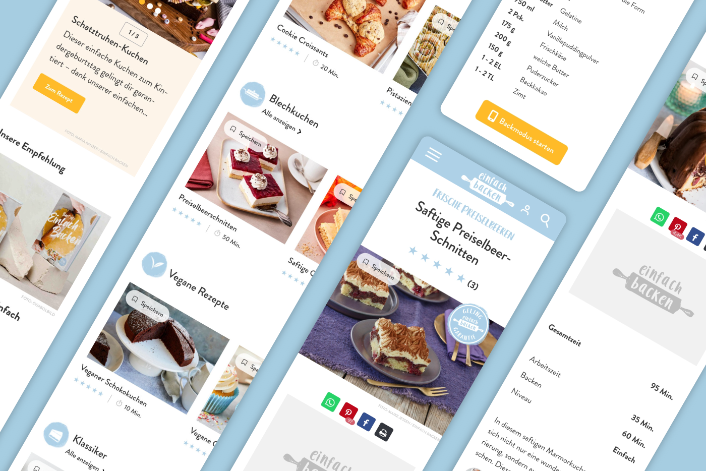 The einfachbacken.de team aimed to share “Geling garantie” (German for “fail-proof”) recipes in order to become the go-to resource for hobby bakers. To achieve this, they used an in-house studio kitchen, perfecting their processes, and in the end published a vast collection of reliable and delicious recipes that anyone can bake. Recipe steps (Drupal paragraphs) with interactive Vue.js components allowed for ingredient amounts to be calculated and auto-adjusted. Streaming video was added to the project, such that the steps were filmed and put online.