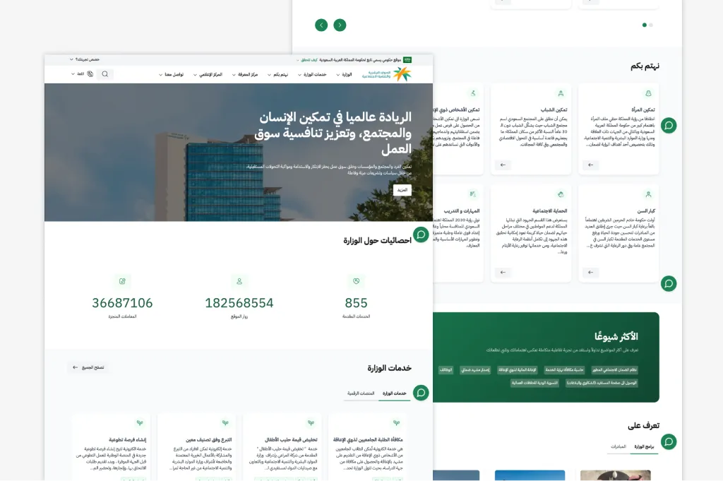 The Ministry of Human Resources and Social Development (HRSD) in Saudi Arabia undertook a strategic initiative to redesign and redevelop its official digital portal to align with the Platforms Code Design System, Saudi Arabia’s official design system for government platforms. Sprintive partnered with HRSD to deliver this transformation using Drupal CMS, ensuring seamless design compliance, robust content management, and scalable integrations—all while enhancing user accessibility and engagement.