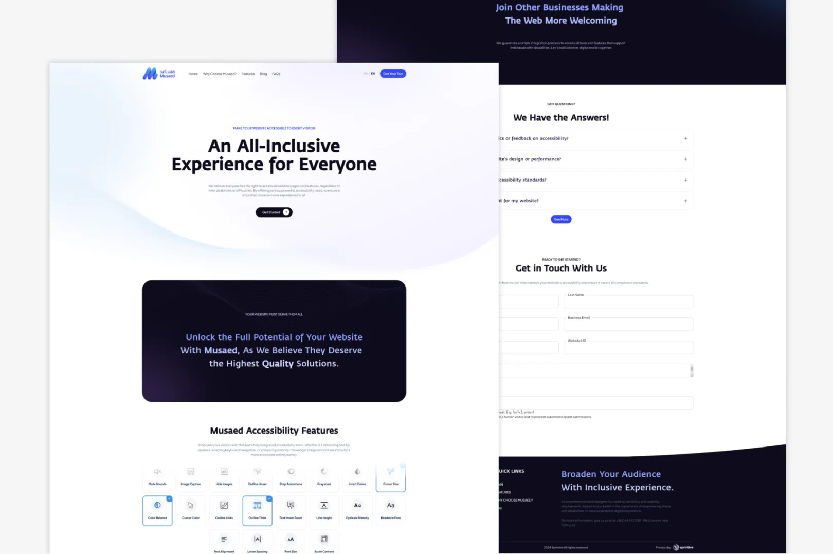 The portal reflects Sprintive’s identity as the creator of Musaed, reinforcing its credibility and commitment to accessibility. The modern design, tailored to reflect the ethos of inclusivity, strengthens brand recognition while appealing to a global audience.