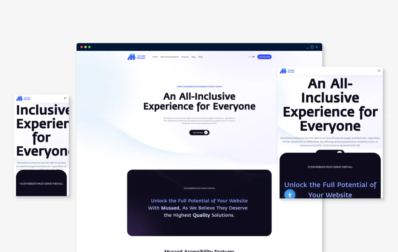 The website embodies the principles of accessibility, reflecting the core values of the Musaed tool itself. It ensures an inclusive and professional interface for all users, highlighting ease of navigation and readability.