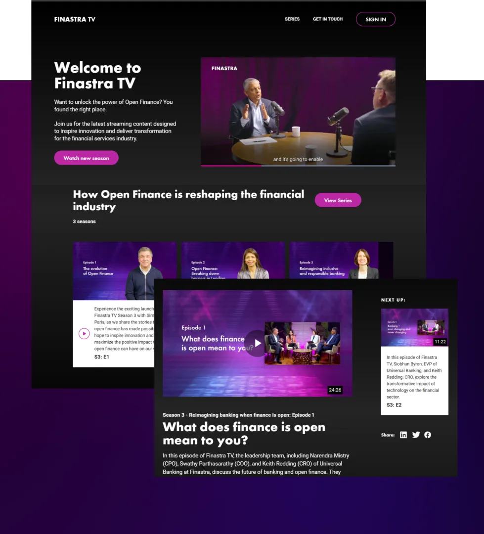 Alongside Finastra.TV, Finastra’s main site continues to undergo significant UX and visual design upgrades. These enhancements ensure that the storytelling and experience on Finastra.com matches the interactive, personalized campaigns being rolled out, creating a seamless experience across platforms.