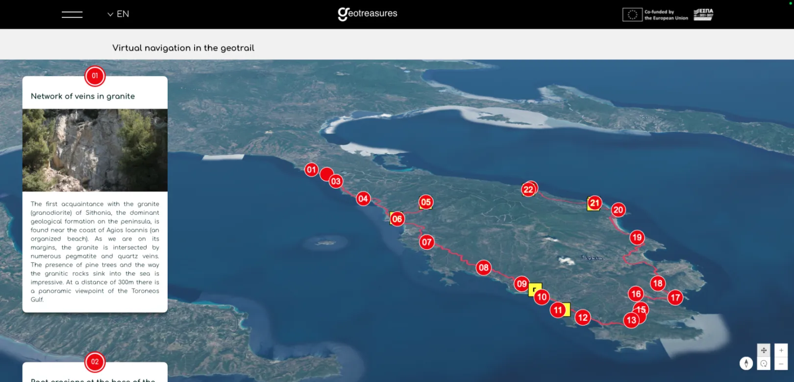 The GeoTreasures project is an initiative by the Hellenic Survey of Geology and Mineral Exploration (EAGME) aimed at showcasing and promoting Greece's rich geological heritage. It offers a comprehensive digital platform that combines scientific information with interactive tools to educate and engage the public.