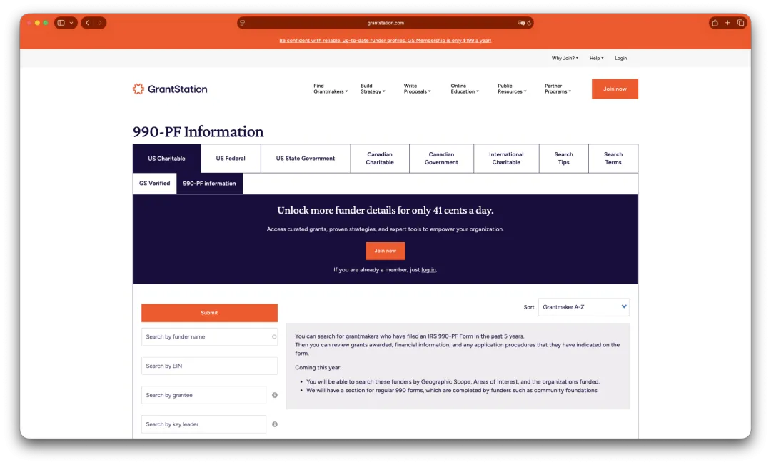 Data from IRS filings is transformed into a usable, searchable resource inside funder and grant views, eliminating manual document digging and enabling insight at a glance. Search is significantly faster and more relevant thanks to Solr and the reworked UX. The architecture scales: Golang preprocessing plus entity relationship tuning keeps performance stable on millions of records. Education becomes a first-class revenue stream with Stripe checkout, automatic LearnWorlds enrollment, and in-profile visibility for learners.