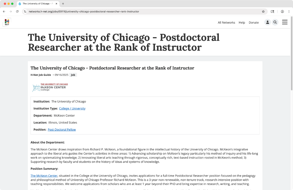 H-Net is an international scholarly network that connects humanities scholars through its Commons platform. A critical part of H-Net's operations is the Job Guide, which provides paid academic job postings that fund much of the organization's work. The previous Job Guide was a custom PHP application, which was difficult to maintain, extend, and integrate with the Commons.