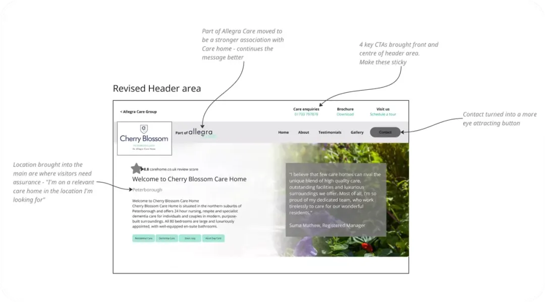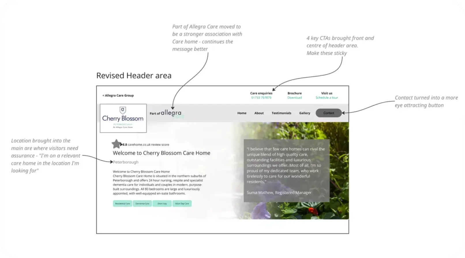 One of the strategies we are keen to explore next is broadening the entry point into the website to people on a journey towards needing care. By providing information and support to individuals and families who may need care in the future, we can increase brand awareness and establish Allegra Care as a trusted, local provider