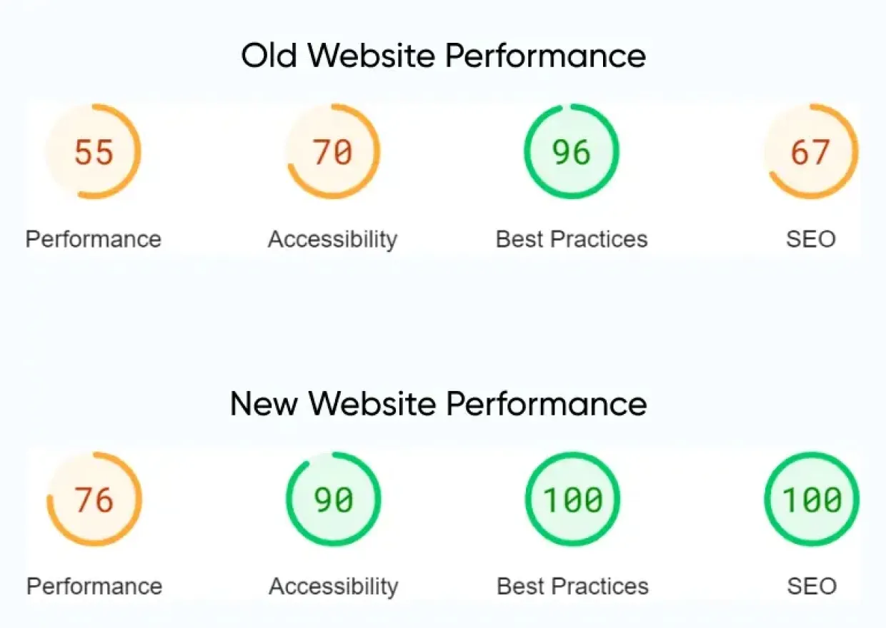 This structural enhancement improved performance and ensured the website's reliability, contributing to an elevated accessibility score and ensuring inclusivity for all users.