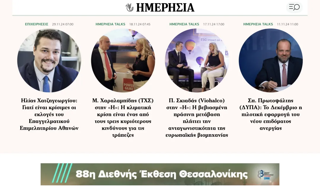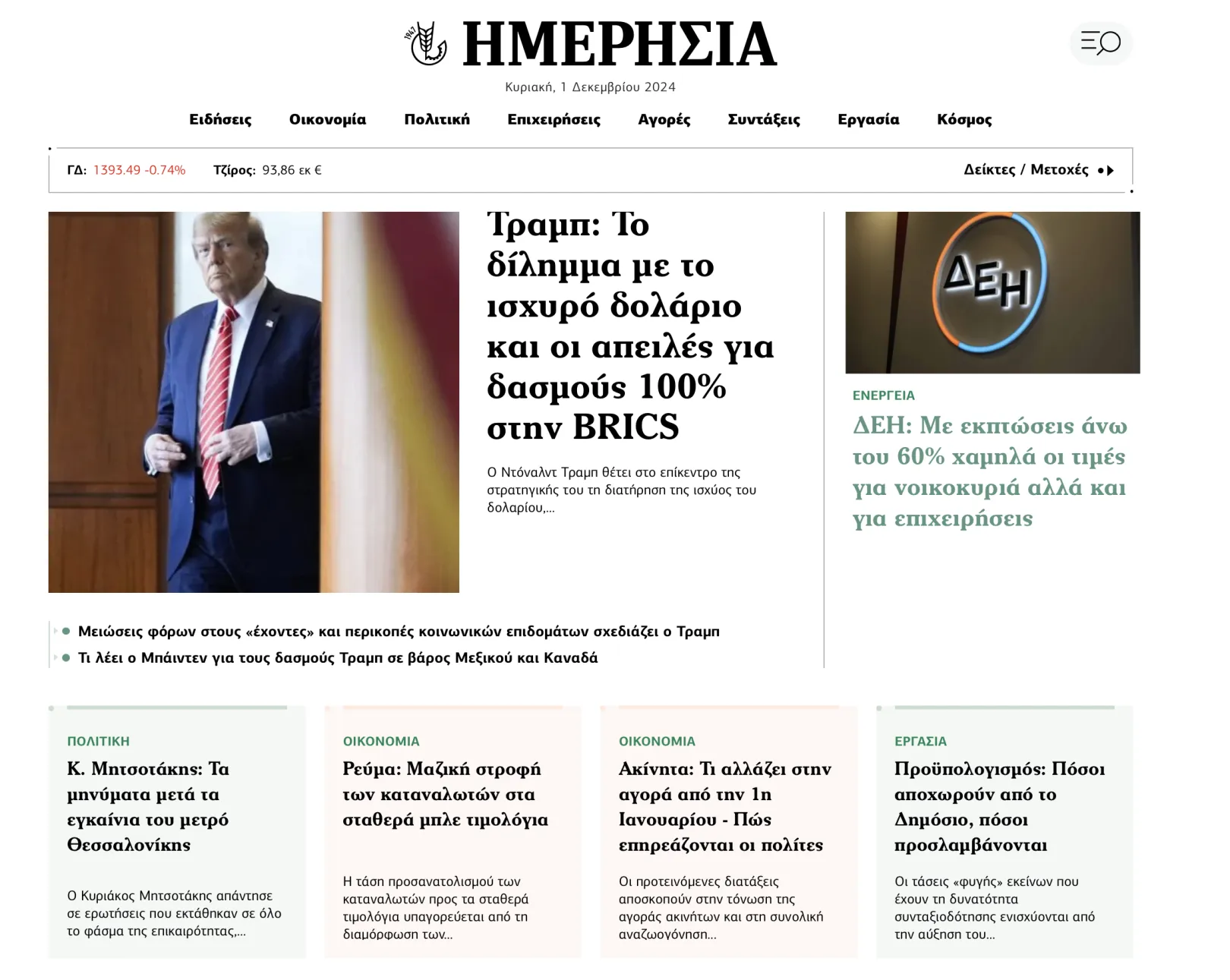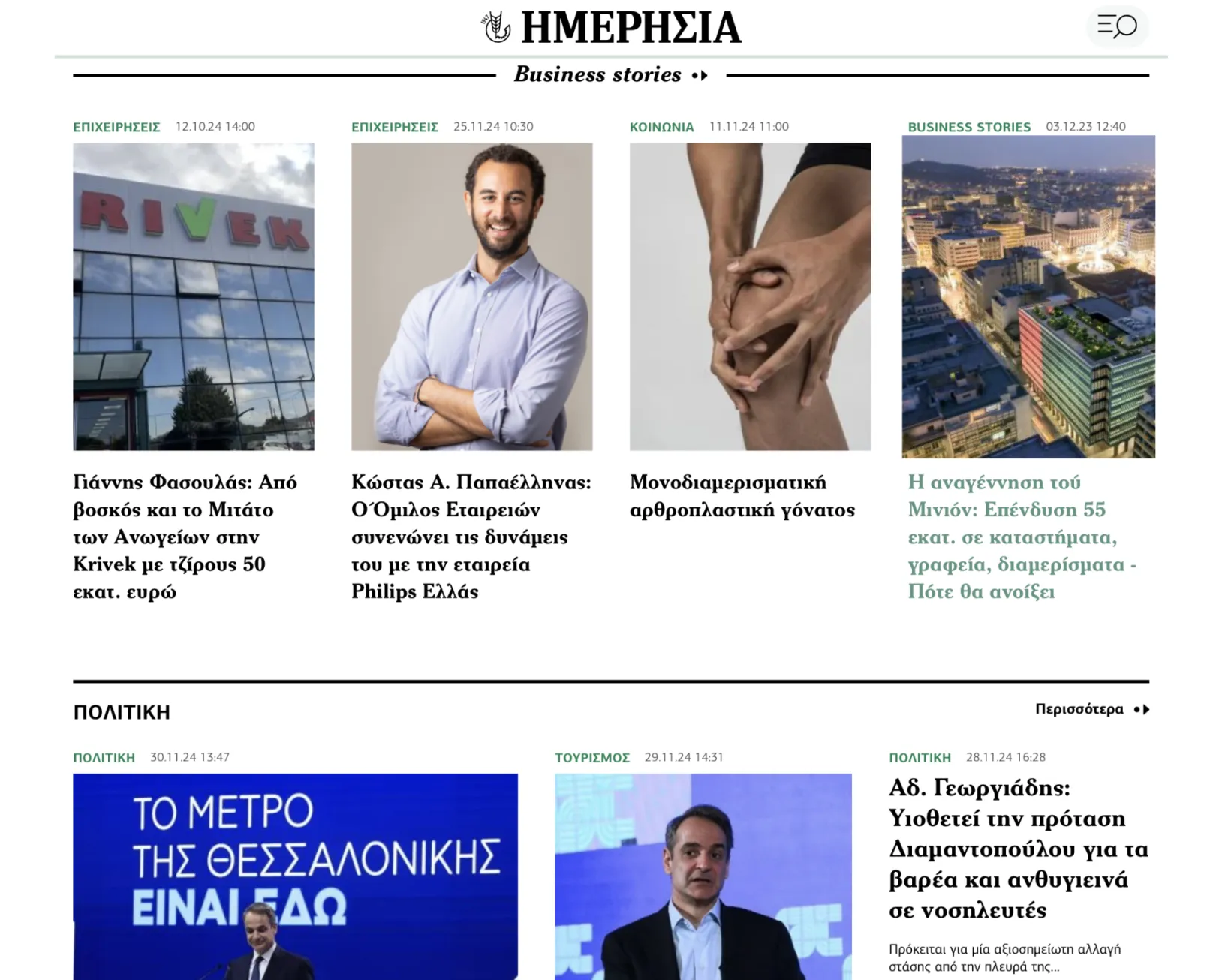 "Imerisia" portal is a comprehensive online platform that offers a wide range of news and analysis, primarily focusing on economic and political developments in Greece and internationally. It encompasses several sections, each dedicated to specific areas of interest like Financial, Business, Banking and Political News.