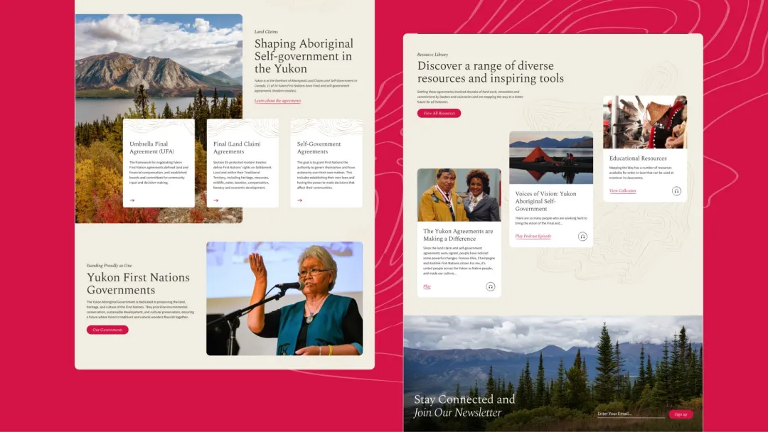 The new design reflects and celebrates First Nations’ histories, stories, culture, and ties to the land. The Drupal website furthers the Yukon Government’s essential mission of celebrating the First Nations’ cultures and identities while raising awareness of the 11 Self-Government Agreements.