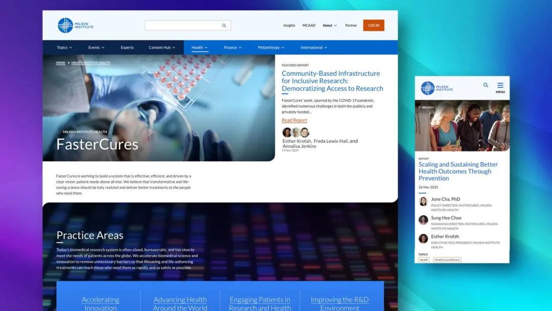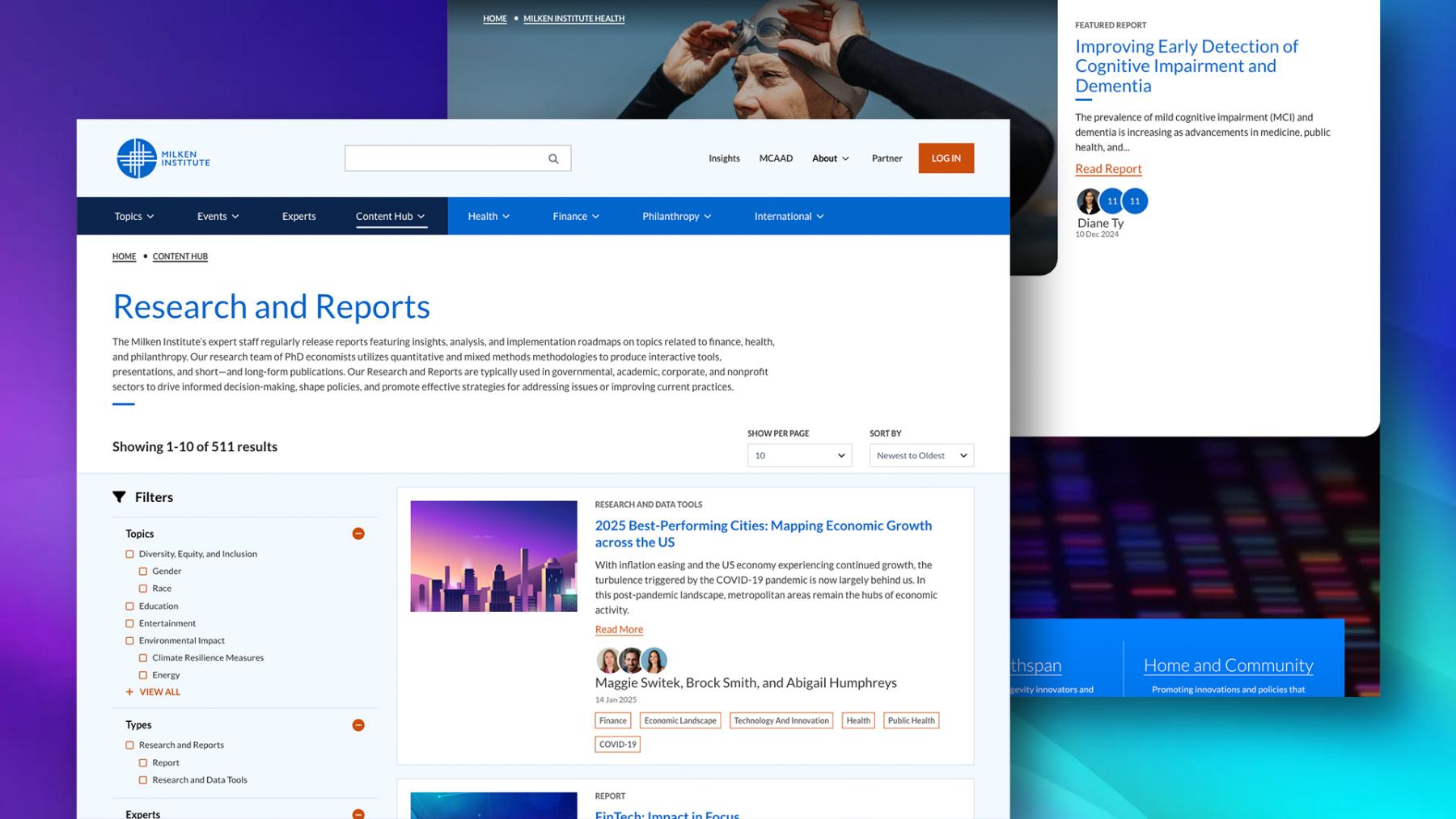 The Milken Institute had recently reorganized its programming under three main pillars: health, finance, and philanthropy, and internal stakeholders looked to increase engagement with its critically important research, publications, and event sessions. Our goals included: