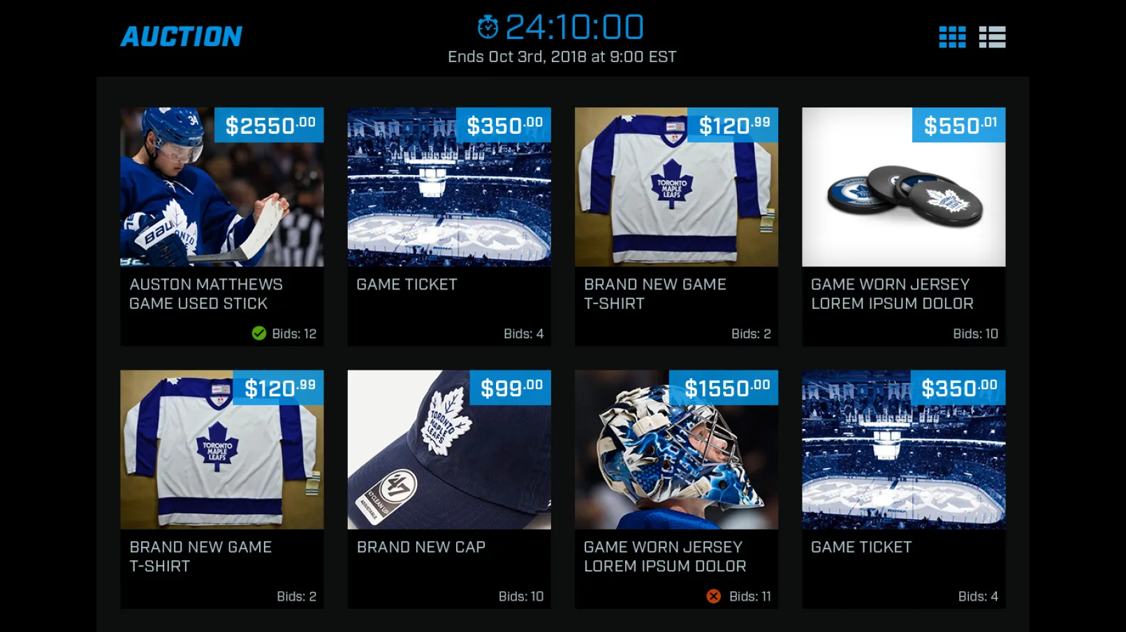 We were expected to set up a new auctions area for MLSE, where various valuables and items would get displayed for the registered sports fans to bid on.