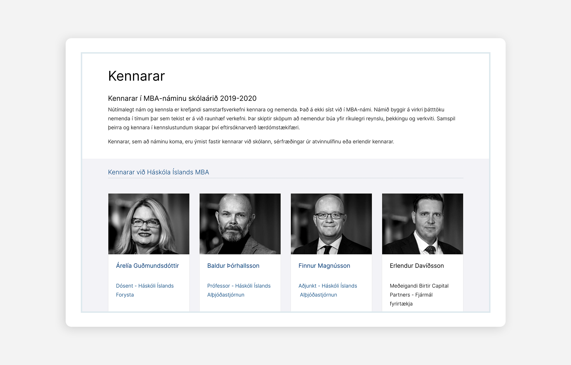 1xINTERNET with the development team of the University of Iceland, built a multi-website platform and went live with the first website for the MBA faculty (mba.hi.is) in the first quarter of 2020. Another project worked on simultaneously was the implementation of a design system for the university, where all elements were defined for other web properties to use directly. The frontend was built as a design system with Patternlab, which is used by the Drupal distribution built by our team. All websites are set up in a way that they can be developed, maintained, and deployed separately, using the University's infrastructure.