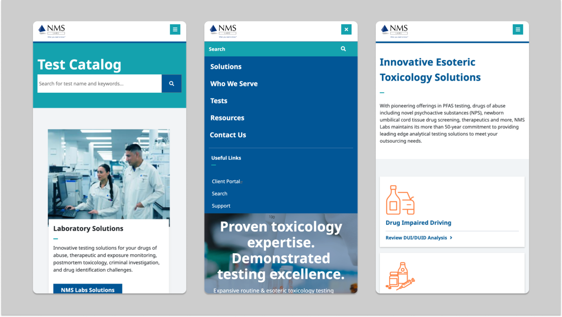We redesigned and optimized the site with new web templates and a focus on mobile-first design; alongside an update from Drupal 8 to Drupal 9 (and later on to Drupal 10). We also developed major improvements to the search filtering harnessing the latest Solr technology, and content showcase of their test catalog with intricate search features. Finally, we implemented a stronger caching feature to handle the large database within the search, this had been a major issue previously with the search/site crashing.