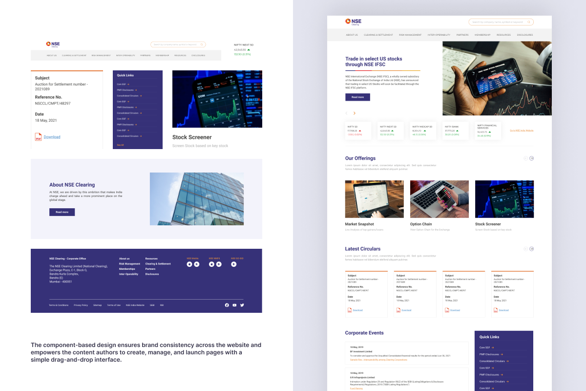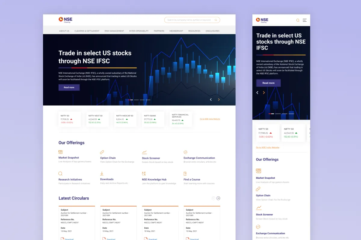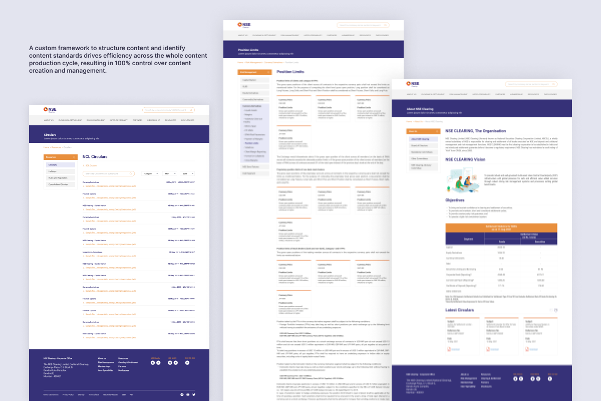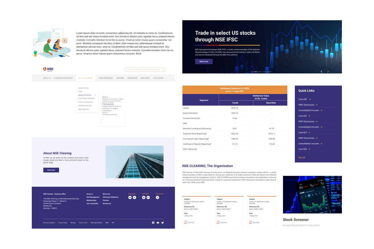 The NSE Clearing website, built in static HTML, was outdated, unresponsive, and not mobile-friendly. The design was not consistent with the parent NSE website. Content management was tedious, and NSE Clearing teams found it difficult to update the settlement statistics and circulars on time.