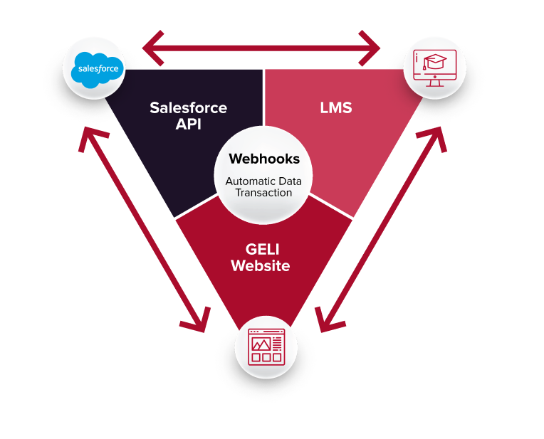 To provide a seamless user experience, we integrated the Learning Management System (LMS) and Salesforce using APIs. This allowed GELI to ensure that users had access to all the necessary information and tools without the need to switch between multiple platforms. By leveraging APIs, we were able to establish a secure connection between the different systems and enable smooth data transfer.