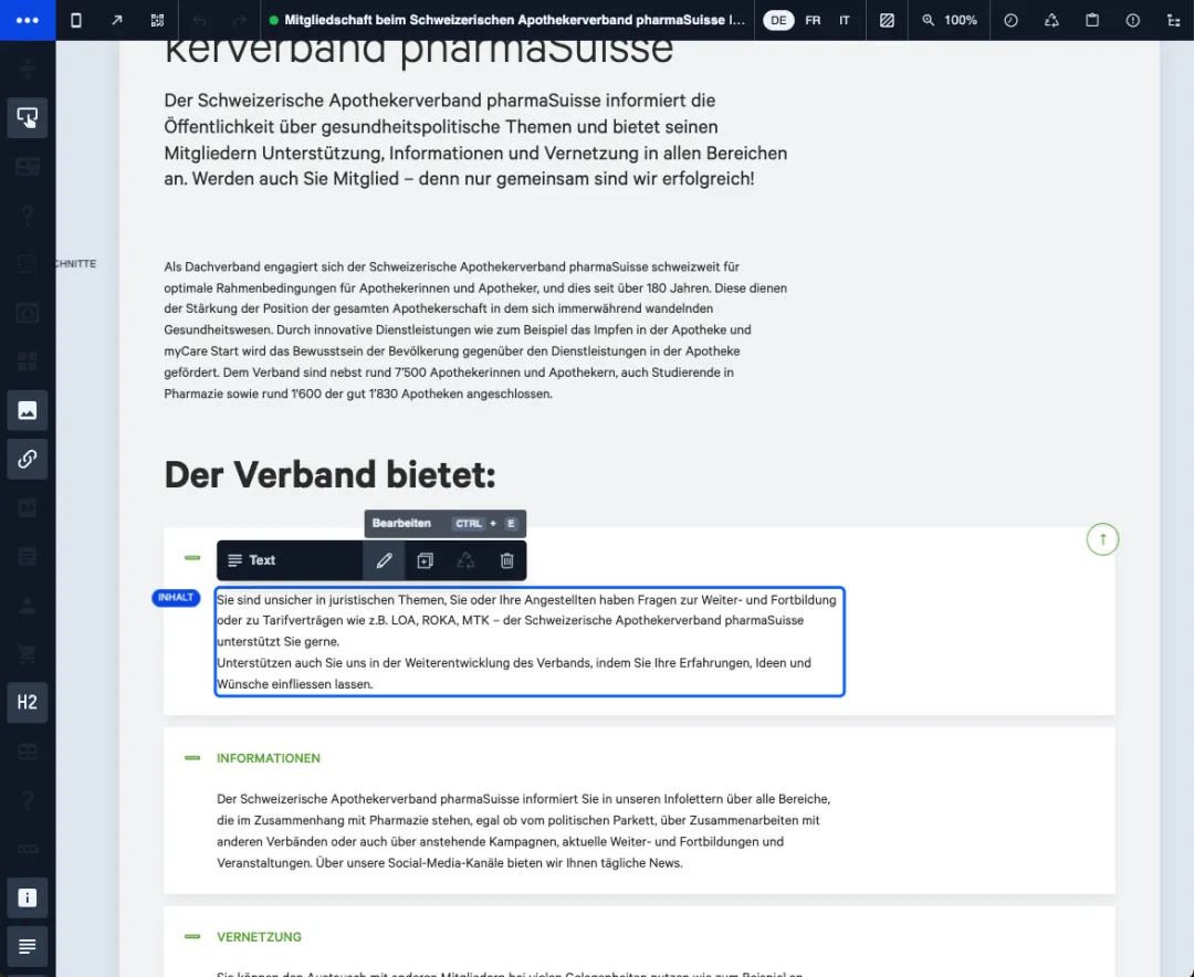 The new website is intended to support both the political communication of the association and the daily work in the pharmacies. Thanks to its modular structure, the Swiss Pharmacists Association pharmaSuisse can quickly respond to changing needs.