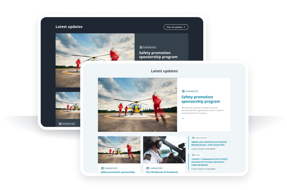 As part of CASA’s website redevelopment, CASA was moving from GovCMS Drupal 7 to GovCMS Drupal 8/9 and wanted to use the opportunity to uplift its digital brand and improve the user experience with a refreshed design. CASA’s internal team went a long way in imagining the new site but needed a web partner to create highly polished designs, interactive components and a digital style guide.