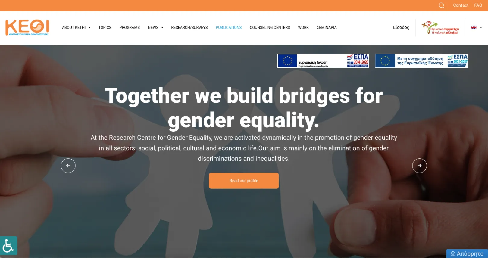 KETHI activates in the promotion of gender equality in all sectors: social, political, cultural and economic life. It promotes gender mainstreaming in all aspects of private and social life, as well as the enhancement of positive actions for women, so as to contribute to the elimination of gender discriminations, stereotypes and inequalities. KETHI also implements national policies and institutional interventions aiming at eliminating gender gaps into private, social and public life.