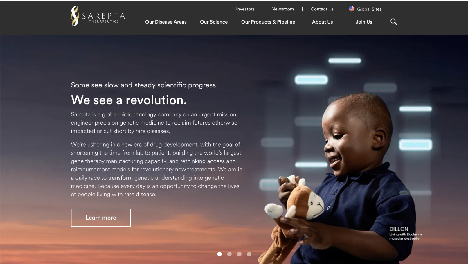 Sarepta Therapeutics has shaped the standards of precision genetic medicine – building and positioning as a leader in Duchenne muscular dystrophy and many other gene therapies. With developments in over twenty programs across three disease areas, Sarepta sought a secure, stable platform that acts as technical hub for several disparate websites. Through our partnership, we’ve built a robust digital ecosystem that is easy to manage, accessible and user-friendly for international audiences, and drives visitors closer to content fit for their needs.
