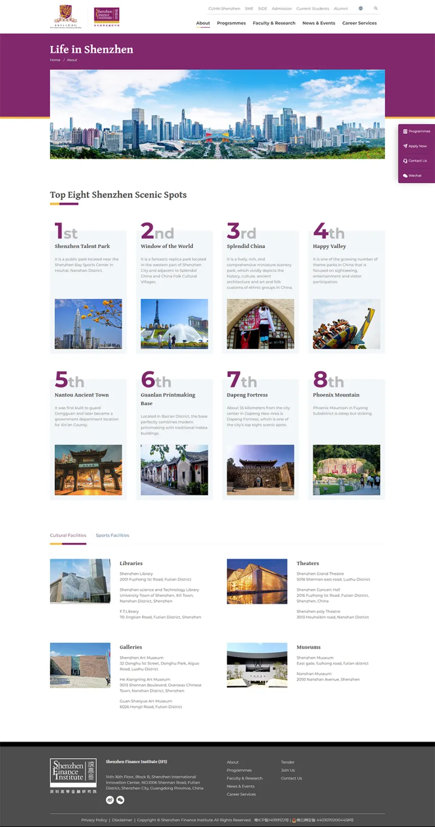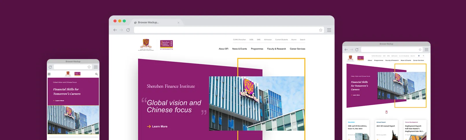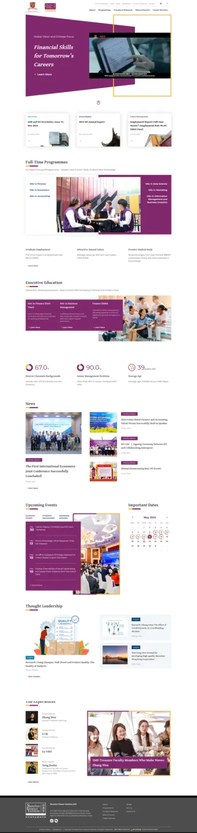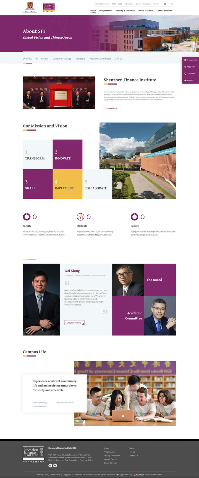 The Shenzhen Finance Institute (SFI) Official Website has been in use for many years, and its overall design style, information display structure, and functionality are no longer adequate to meet the rapid development of the institute in recent years. Therefore, the institute has decided to undergo a complete overhaul of the website while retaining the original data. This redesign aims to enhance the institute’s brand and overall image.