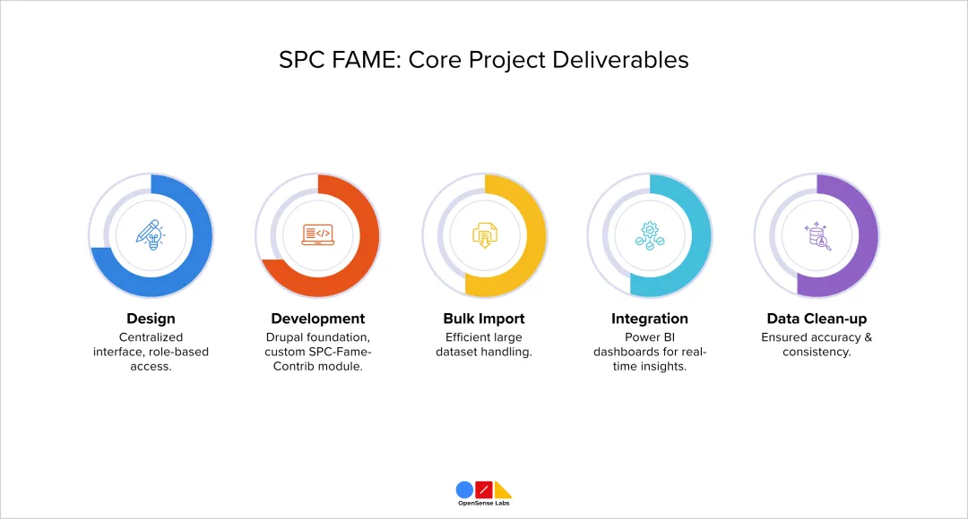 OpenSense Labs partnered with SPC FAME to implement a Drupal cloud-based centralized platform, integrated with Power BI dashboards, consolidating all member requests, training records, and feedback into a single, secure, and accessible system. This solution enabled real-time insights, scalable data management, and enhanced visual reporting for the organization.