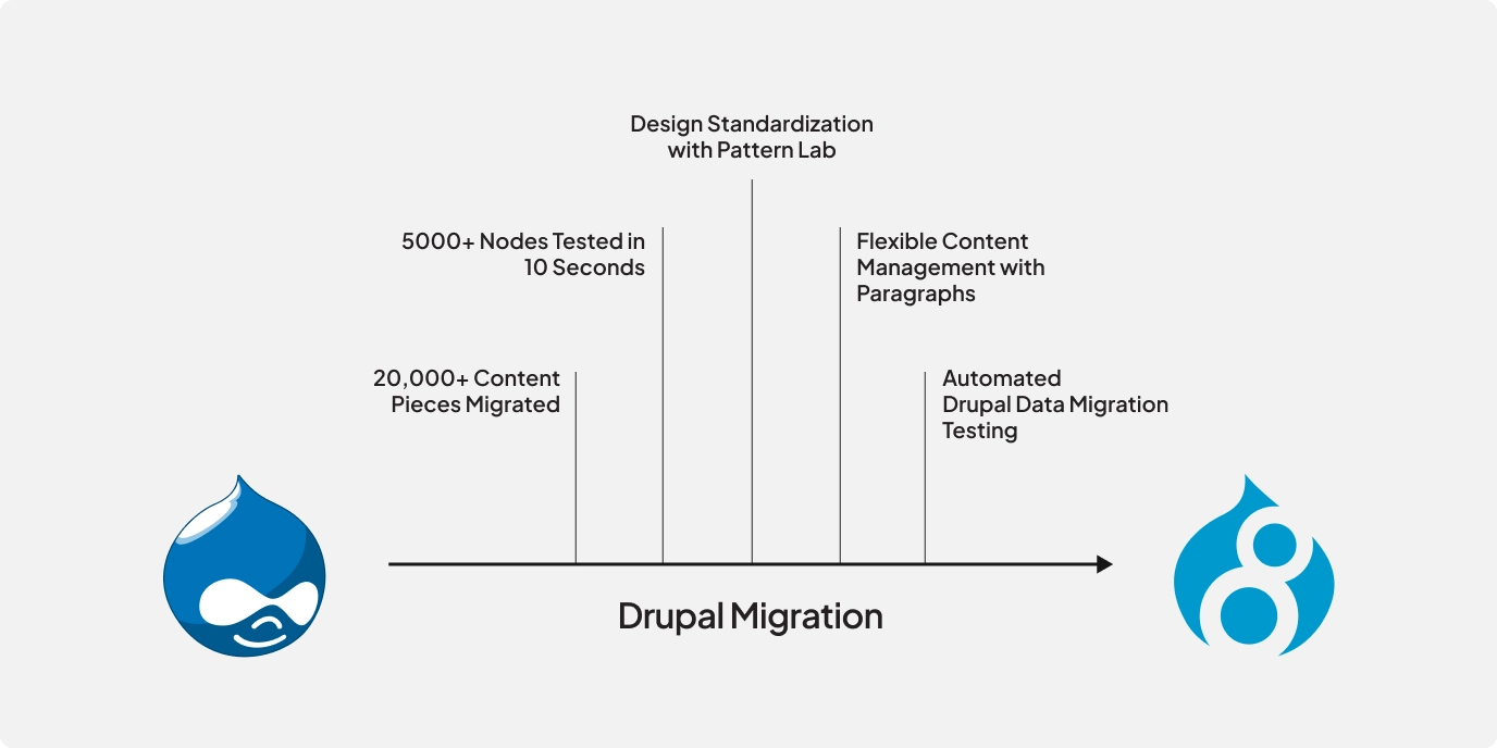 We migrated Stanford's Drupal 7 platform to Drupal 8 and then upgraded it to Drupal 9. We automated the data migration process, seamlessly transferring over 50,000 entities from the old site to the new one. This ensured a smooth transition and minimized the risk of data loss or corruption.