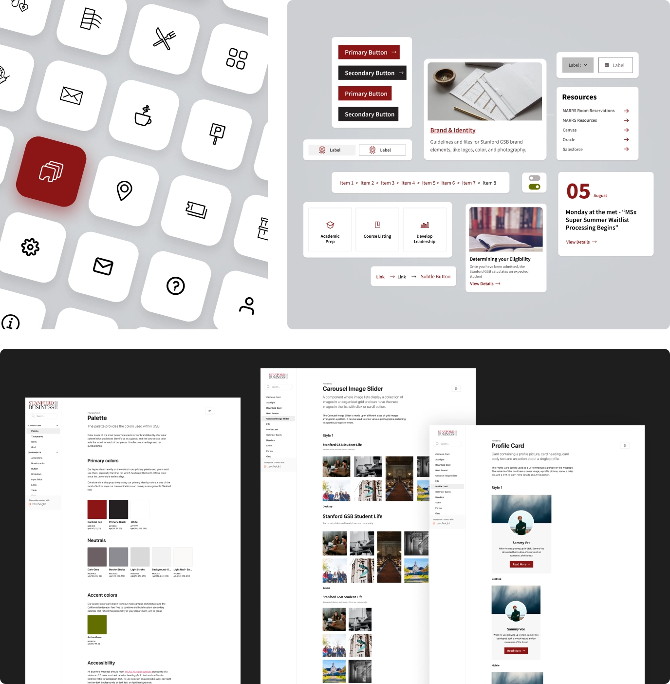 We developed a unified library of components, patterns, and guiding principles for the school's platforms and apps, creating a structured approach for their design. Our efforts extended to building unique, scalable components, incorporating atomic components for cohesive experiences.