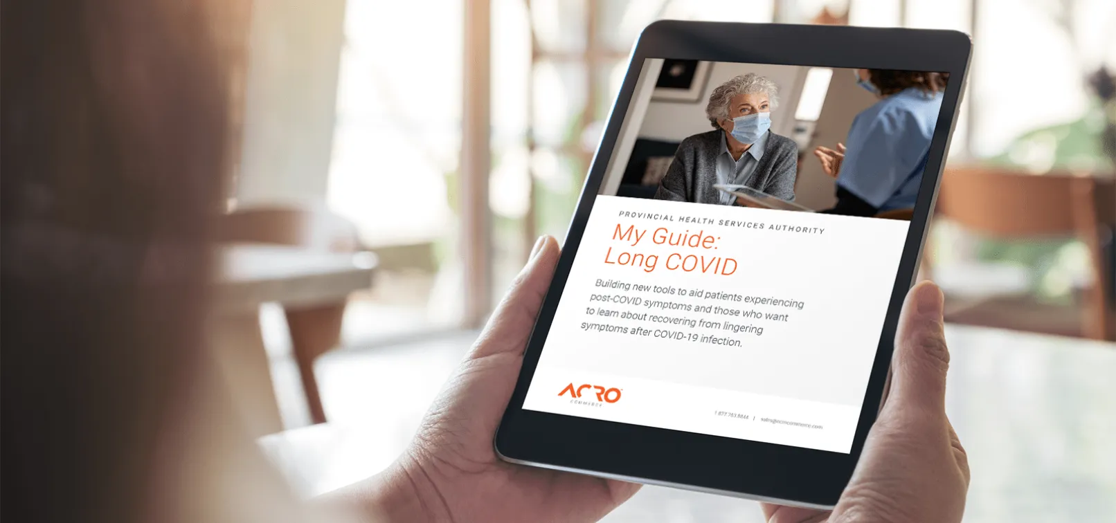 The Provincial Health Services Authority (PHSA) partnered with Acro Commerce to develop a clinical tool called "My Guide: Long COVID". This project aimed to create a new online resource to help patients manage post-COVID symptoms and learn about recovery.