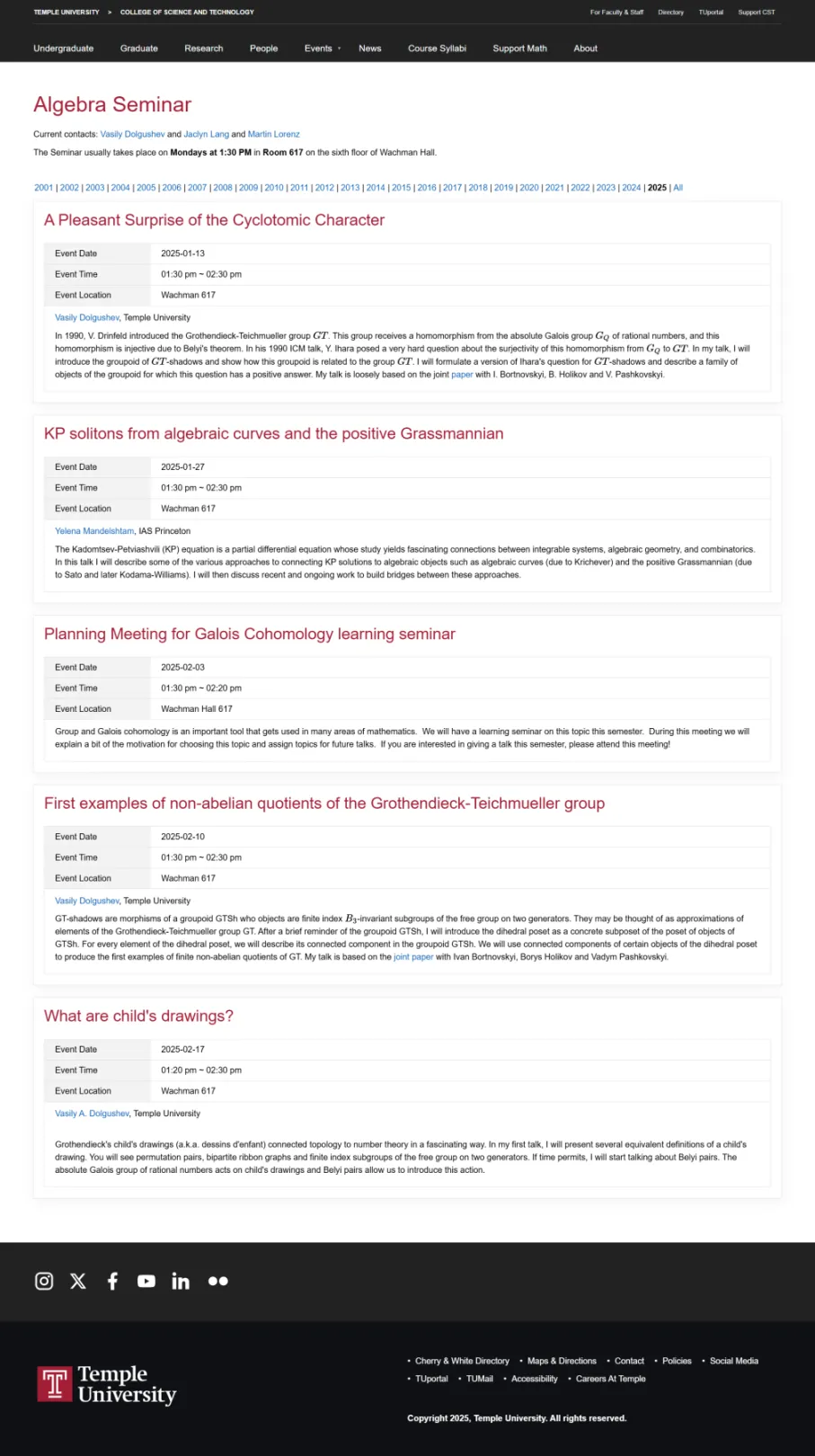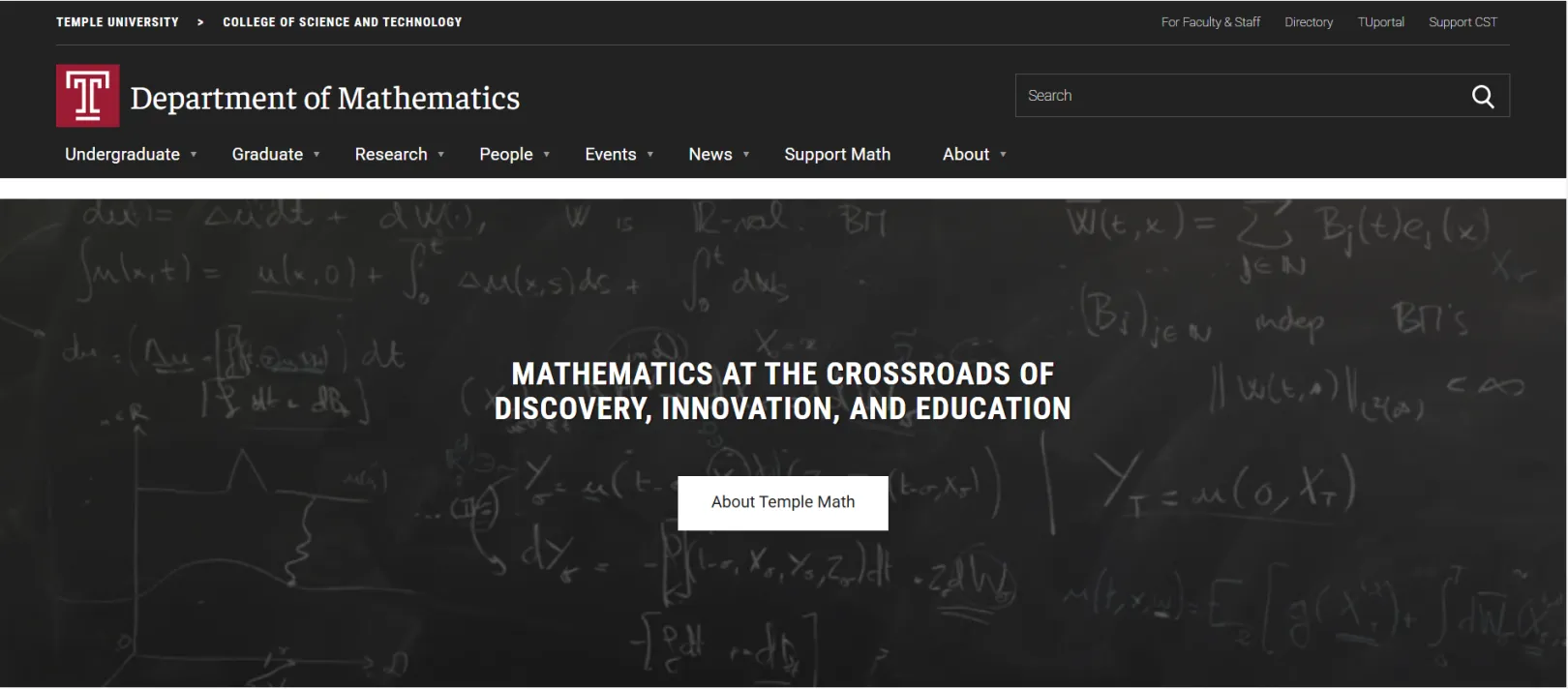 Temple University's Department of Mathematics is dedicated to advancing research, training graduate students, and providing a high-quality education to undergraduates. The department offers diverse mathematics programs, integrating pure and applied mathematics with disciplines like computer science, economics, and education. With a strong emphasis on problem-solving and critical thinking, the department prepares students for careers in academia, industry, and beyond.