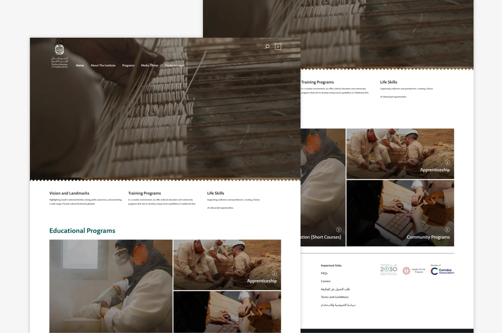 The Royal Institute of Traditional Arts (Wrth) seeks to strengthen its brand identity as the guardian of Saudi Arabia’s rich traditional arts, in line with Vision 2030. The website will reflect Wrth’s cultural essence, promoting its mission to preserve, educate, and share Saudi heritage with a global audience.