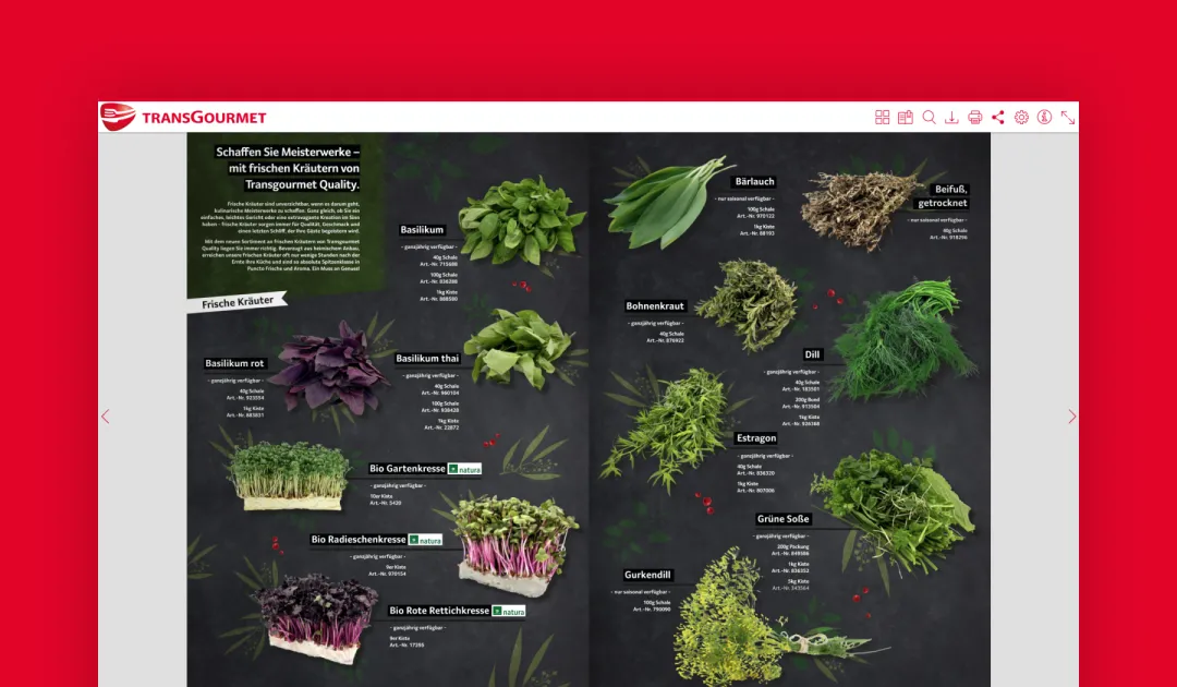 Employee magazine Transgourmet provides a magazine for its employees, featuring company news, updates, employee spotlights, and industry-related articles. |
