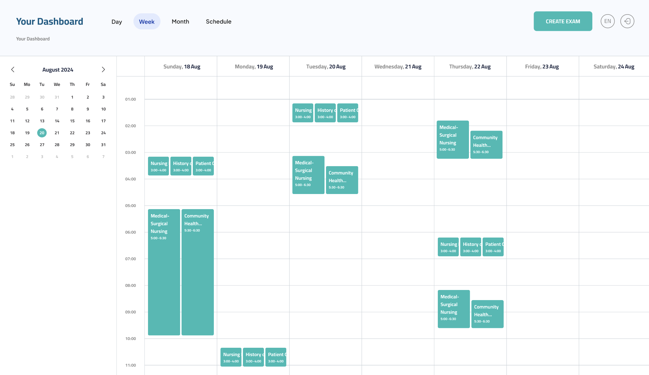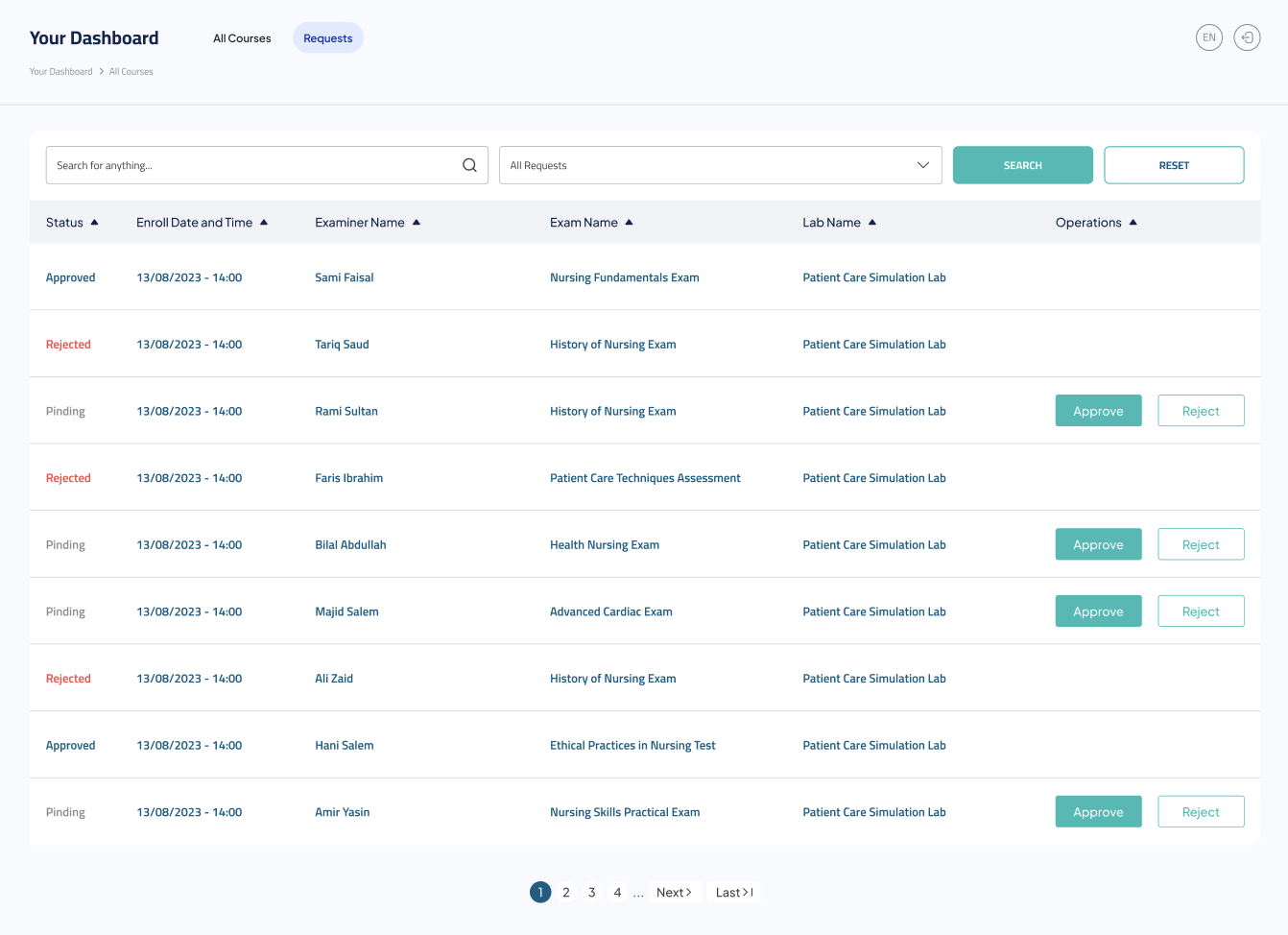 - Center-based management of labs, gender-specific availability, exam schedules, and proctor information.