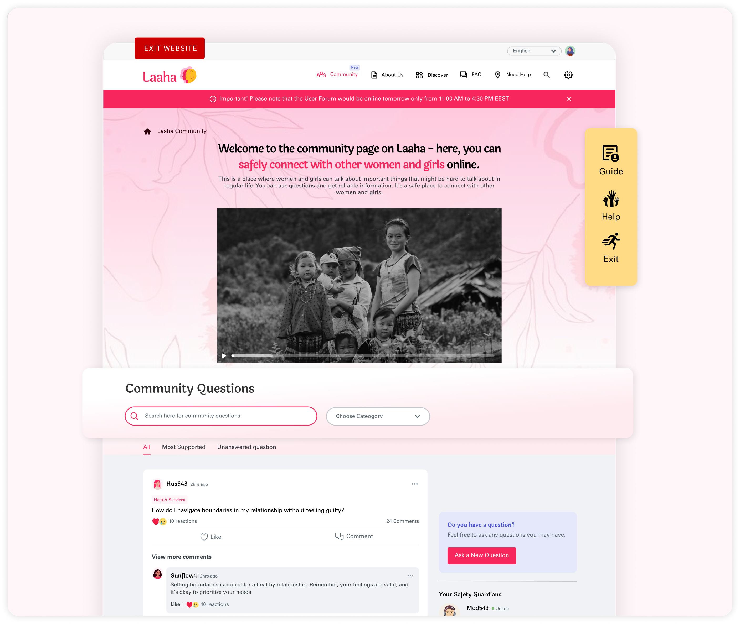 Laaha was designed around the real-world constraints faced by women and girls with limited digital experience, often accessing the platform in unsafe or shared environments.