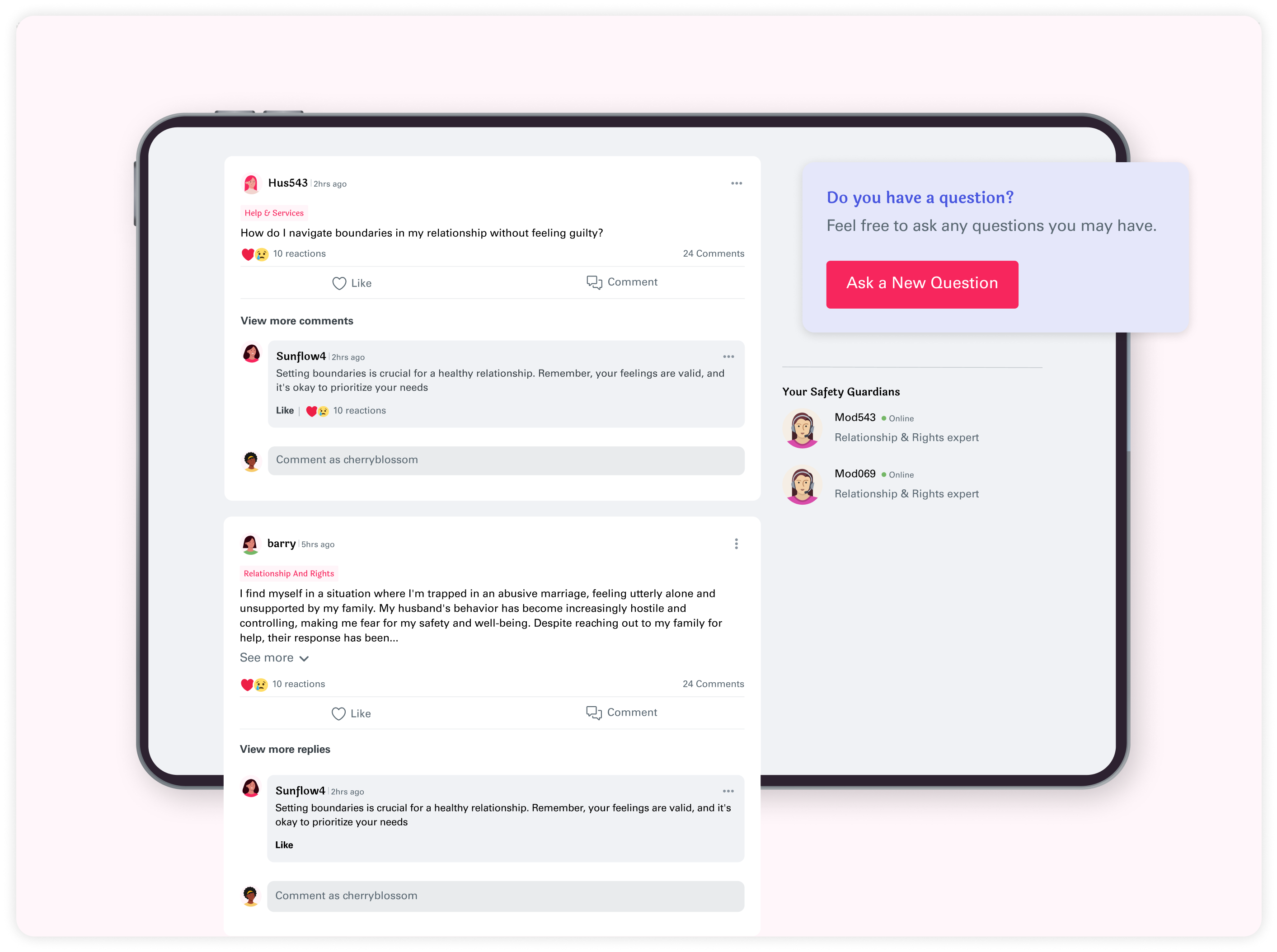 The platform reflects design and engineering informed by users' lived experiences, needs, and input. Our collaboration with QED42 has created something rare: a digital space for women and girls in crisis-affected settings that feels trustworthy, accessible, and human.