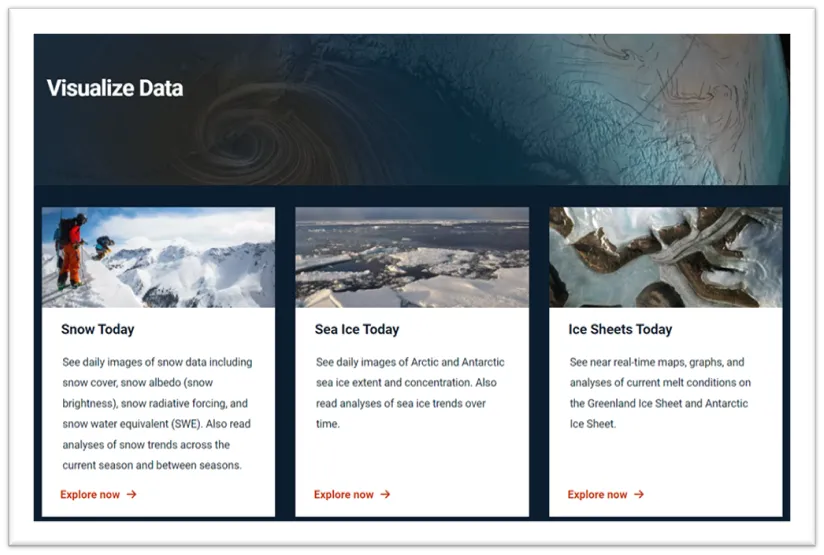Goals: NSIDC engaged Mobomo to redesign its web platform to better reflect its mission, research, and service to the global scientific community. The goal was to replace an unstructured legacy site with a secure, streamlined, and engaging digital experience that could serve a diverse audience—including scientists, educators, policymakers, and the public.