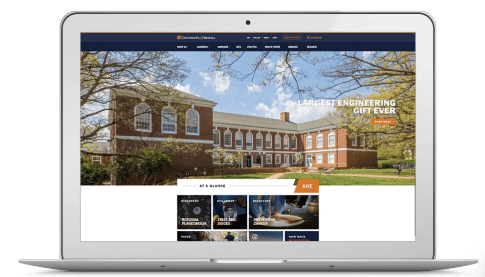 Serving as a virtual extension of its campus, the UVA website provides a variety of information and services for the students, parents, faculty, alumni and patients who use it. From accessing the academic calendar to connecting with the career center, users count on the website to get information, conduct business and communicate directly with University departments. But the University’s previous web content management platform was a mishmash of disparate solutions, and the “Wild West” approach to web publishing meant that scalability was difficult at best.
