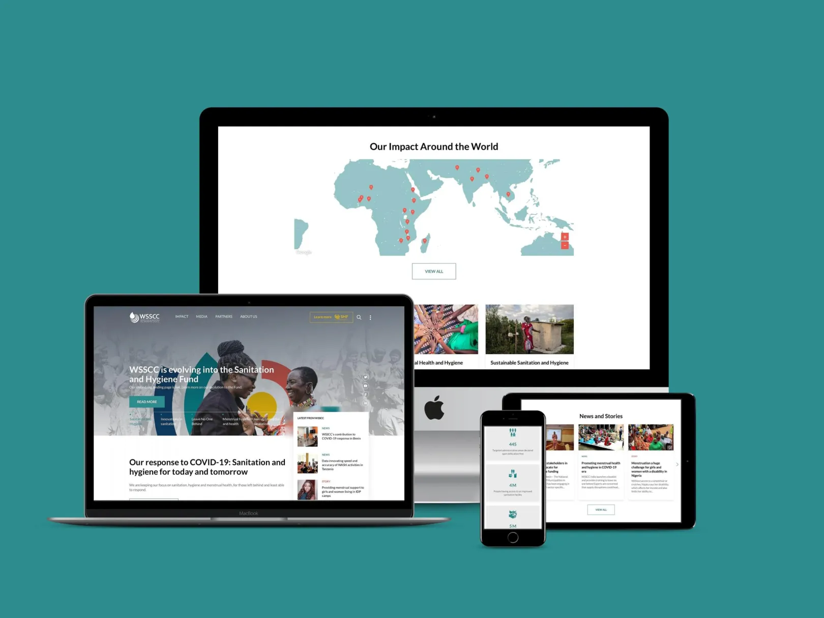 The design was implemented after a discovery workshop held with UNOPS/WSSCC staff. The workshop included persona development, draft wireframing, and structuring of the website.