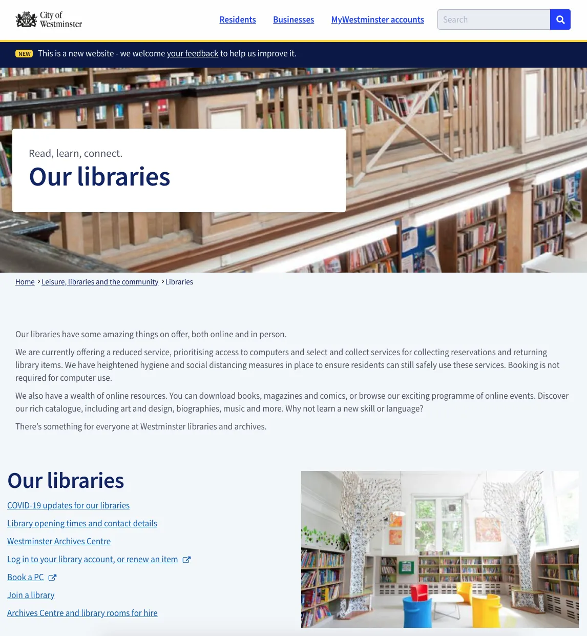 - deliver a user centered, modern design that reflects the council branding but that also creates an inclusive community feel